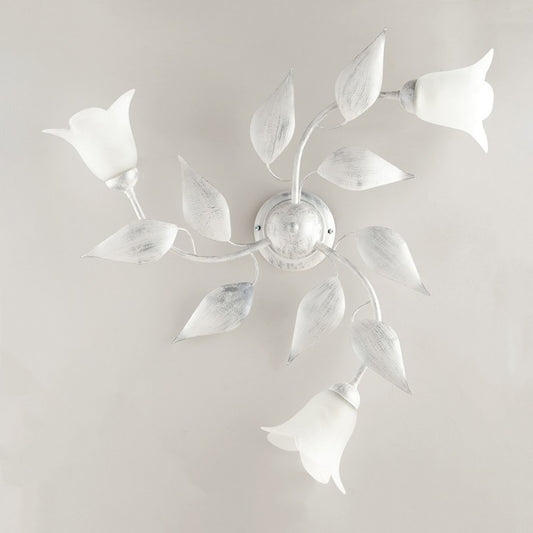 Plafoniera in ferro Bianco Argento tre luci vetri Alabastro Bianchi 67x h20 cm