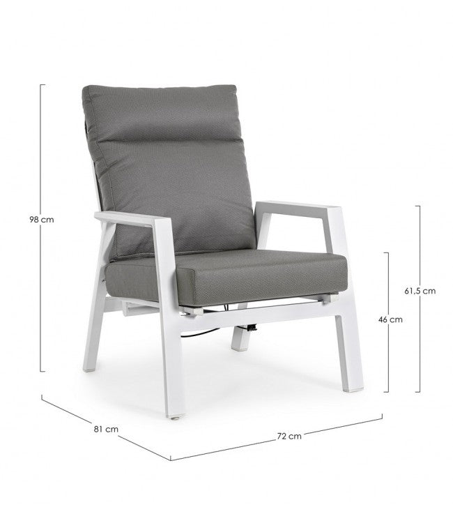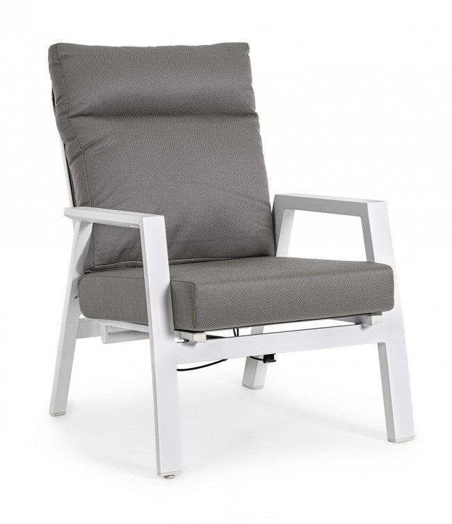 struttura in alluminio verniciata a polvere (poliestere). schienale reclinabile in libera posizione e seduta in textilene 1x1. cuscini sfoderabili con tessuto olefin (100% polipropilene).