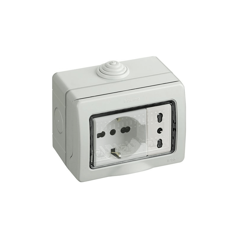 - Bticino Idrobox kompletter Schaltkasten mit Bypass-Steckdose und Schuko-Steckdose