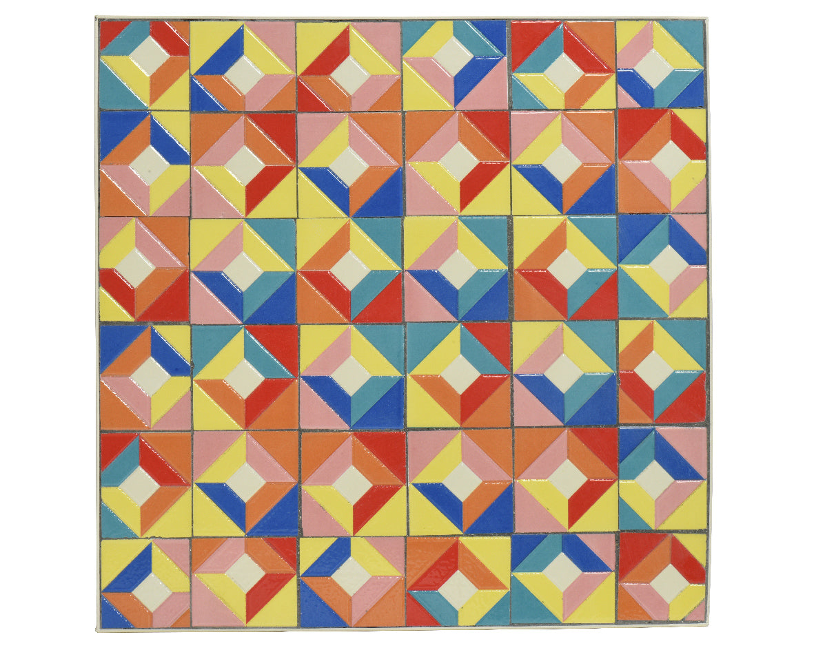 - Eisenstuhl mit Terrakotta-Mosaikfliesen;