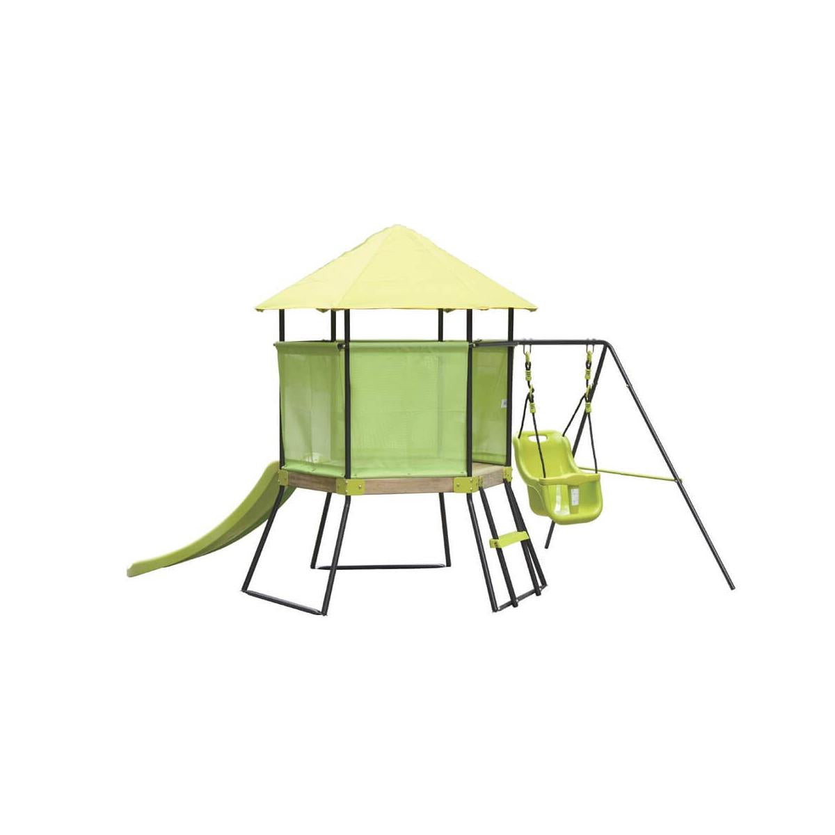 La casa dei giochi Gulliver è un'installazione pensata per il divertimento dei bambini, caratterizzata da una struttura robusta e sicura che offre diverse opzioni di gioco e intrattenimento. La struttura esagonale della casa offre uno spazio ampio e sicuro per giocare all'aria aperta, promuovendo attività fisica e creatività nei bambini. Le sedute con cinture di sicurezza garantiscono un utilizzo protetto e confortevole, mentre il ripiano in legno aggiunge praticità per organizzare gli accessori necessari al gioco.