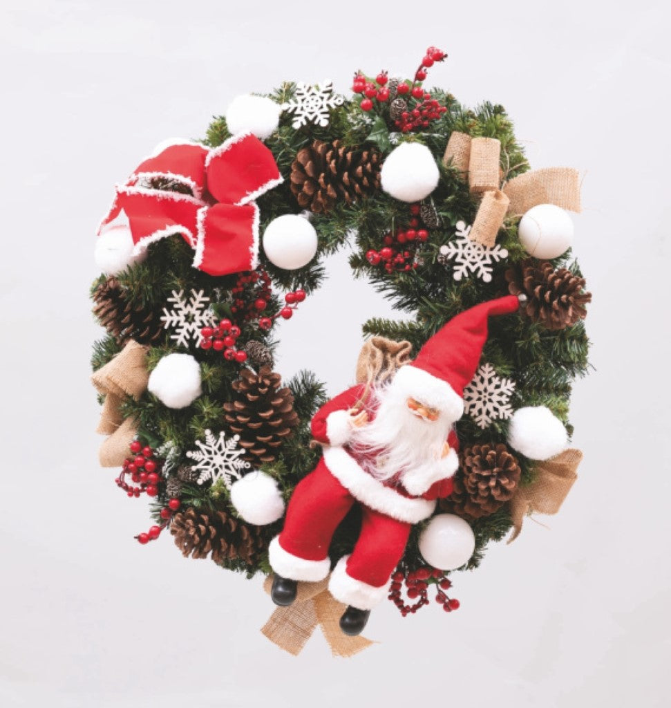 Scopri la bellezza di questa corona verde di 60 cm, perfetta per addobbare la tua casa durante le festività. Arricchita con pigne, sfere, bacche e un nastro di velluto, questa decorazione porta con sé un'atmosfera calda e accogliente. Inoltre, un adorabile babbo natale rende questa corona un elemento unico e gioioso per il tuo arredamento natalizio.