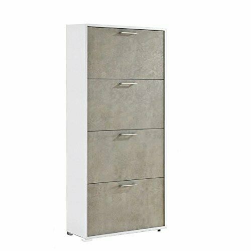 Das Schuhregal mit 4 Türen und doppelter Tiefe in Weiß/Zement ist die perfekte Lösung, um Ihre Schuhe organisiert und leicht zugänglich aufzubewahren. Mit seinem doppelten Kunststoffbehälter bietet dieses Schuhregal Platz für bis zu 18 Paar Schuhe und bietet Ihnen ausreichend Platz für das gesamte Schuhwerk Ihrer Familie.