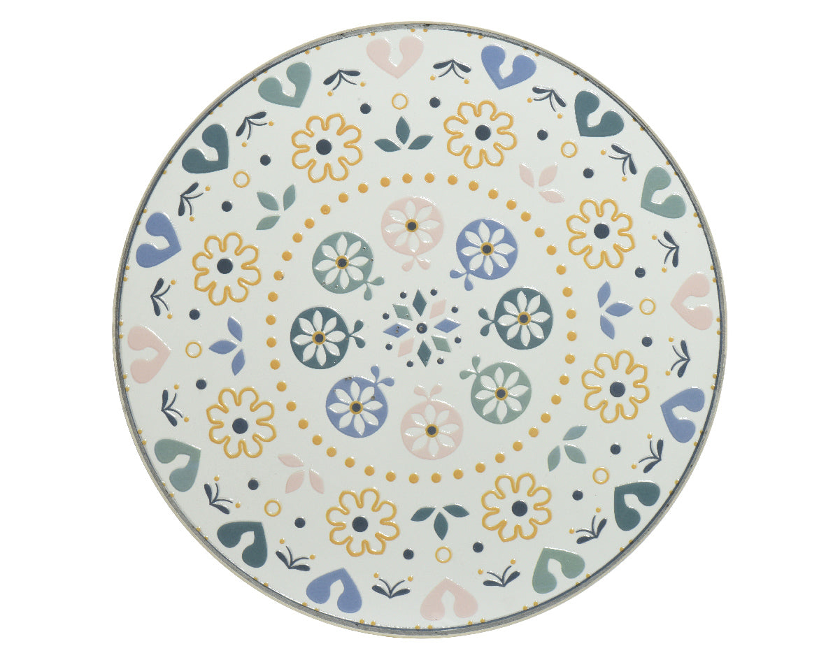 - Eisenstuhl mit Terrakotta-Mosaikfliesen