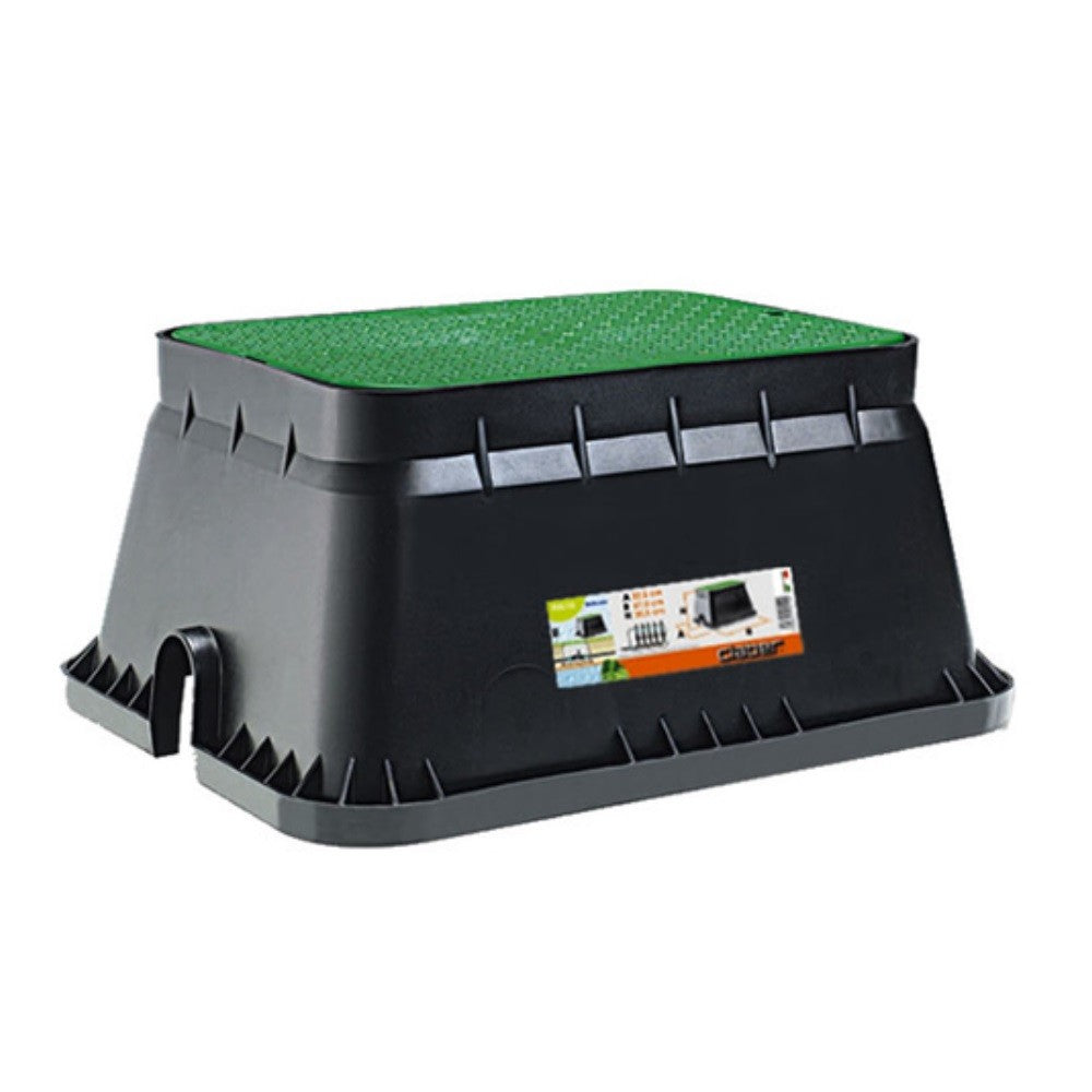 Rechteckige Form mit Deckel, der durch eine vandalensichere Schließvorrichtung geschützt ist.