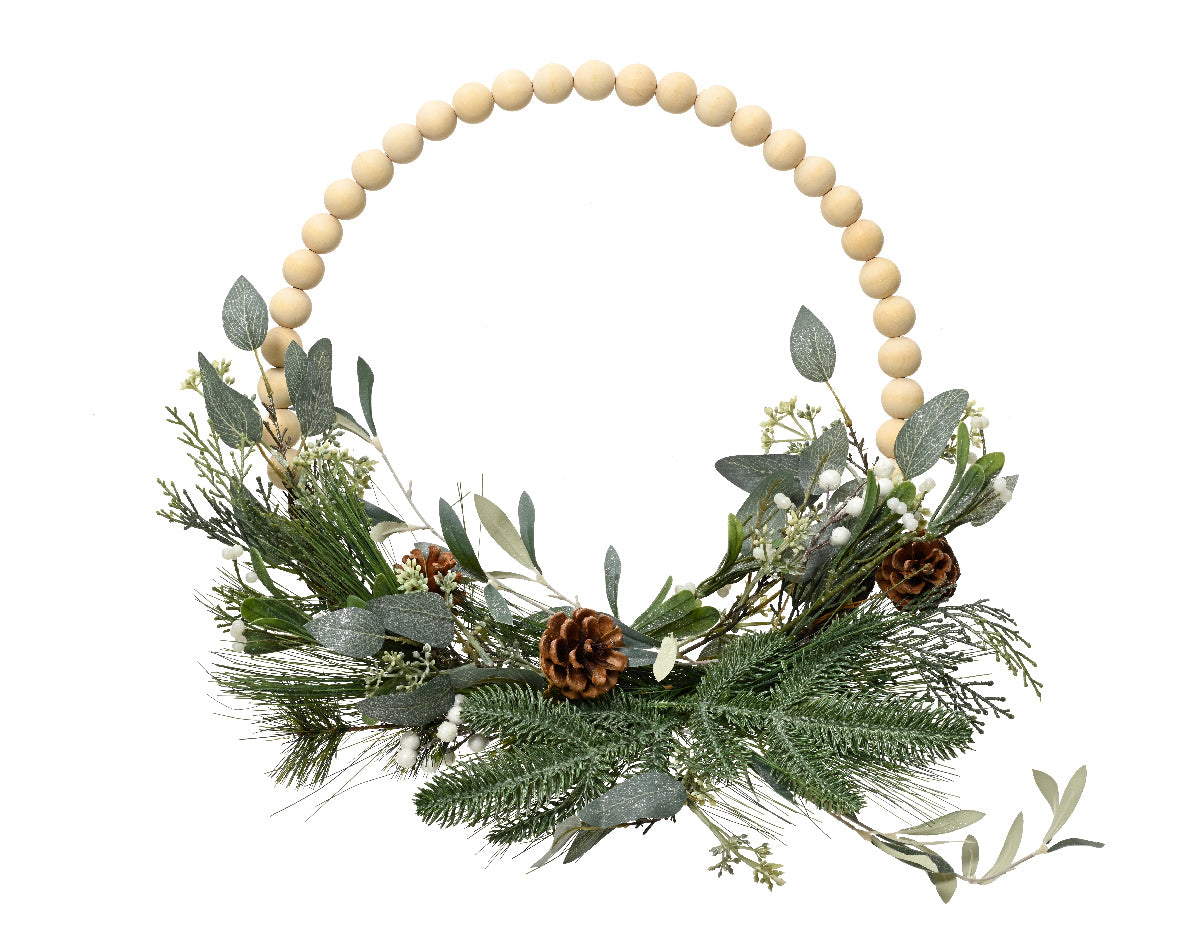 Moderner Girlande mit glitzernden Holzkugeln, Eukalyptuszapfen und Kugeln für den Innenbereich H 10 x Ø 40 cm