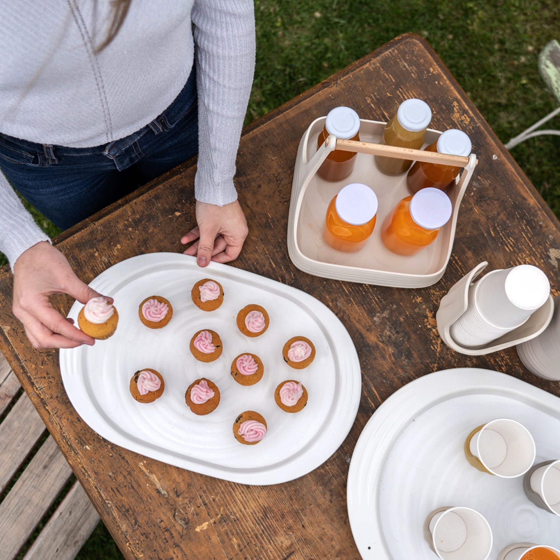 - Das Tablett mit erhöhten Kanten garantiert einen hervorragenden Halt und eine korrekte Aufnahme der Lebensmittel auf einer sehr großen Auflagefläche;