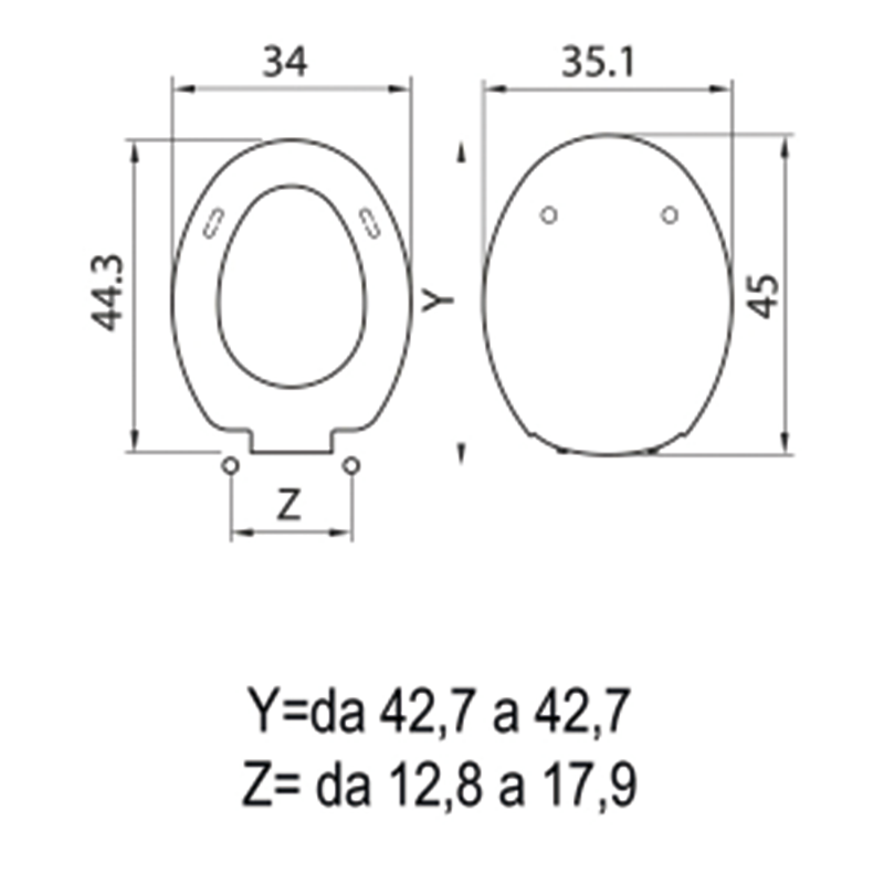 Toilettensitz aus Duroplast mit einer Form, die dem Modell Ellisse Ideal Standard gewidmet ist.