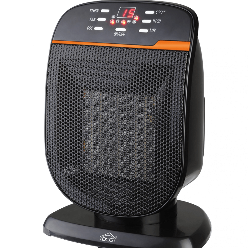 Pantalla LED con temporizador y temperatura 3 niveles de calor: ventilador, bajo (900 W) y alto (1800 W);