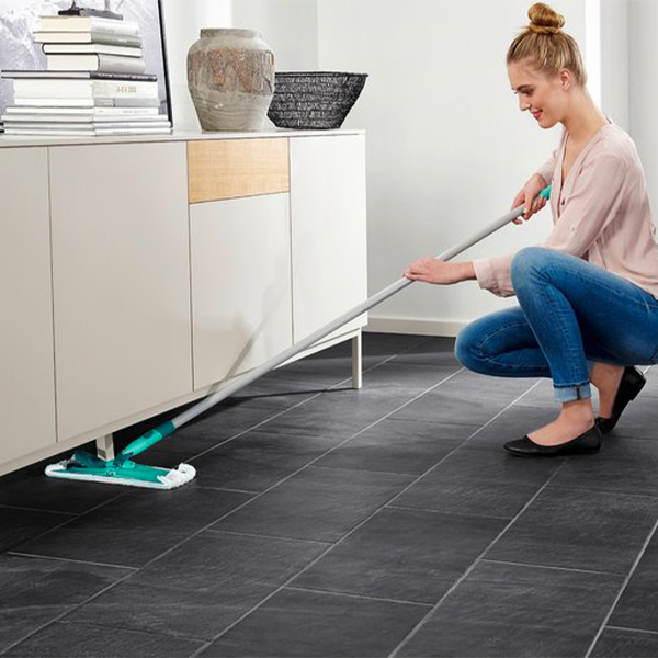 - Gracias a su forma perfilada, el revestimiento limpia esquinas y rodapiés en una sola pasada