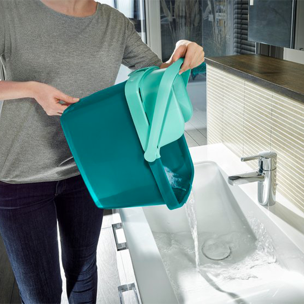 - Gracias al inserto específico, es posible escurrir el revestimiento sin agacharse y sumergir las manos en el agua sucia.
