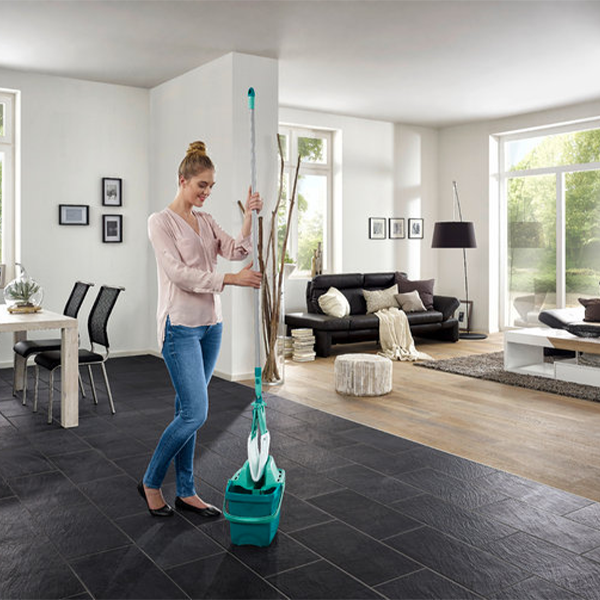 Limpie a fondo sin doblar y sin sumergir las manos en el agua sucia. El kit Combi Clean de Leifheit ofrece todo lo que necesita para una limpieza de suelos sin esfuerzo: un paño para suelos, un cubo compacto de 12 litros y una aplicación Combi Press para escurrir cómodamente el paño para suelos. Con su revestimiento de 2 fibras asegura una limpieza profunda. Las filas de cerdas muy finas y ligeramente sobresalientes recogen la suciedad de todas las asperezas y eliminan sin esfuerzo incluso los depósitos de suciedad más rebeldes. Dado que el revestimiento abraza los lados de la escobilla, también se limpian las esquinas y los bordes. Una solución igualmente práctica: articulación giratoria flexible y manija completamente plegable. Esto permite una limpieza efectiva en caminos sinuosos y para lugares de difícil acceso debajo de cajones, armarios y camas, la tela se aplana por completo. Para escurrirlo cómodamente, suelte el paño del suelo con un clic del pedal. Coloque la cubierta en Combi Press y escúrrala empujando el paño del piso hacia atrás. Y eso es. El tapizado aprieta sin doblarse y tus manos quedan limpias. La tela mide 34 cm de ancho. Leifheit ofrece una garantía de 2 años para el kit Combi Clean.