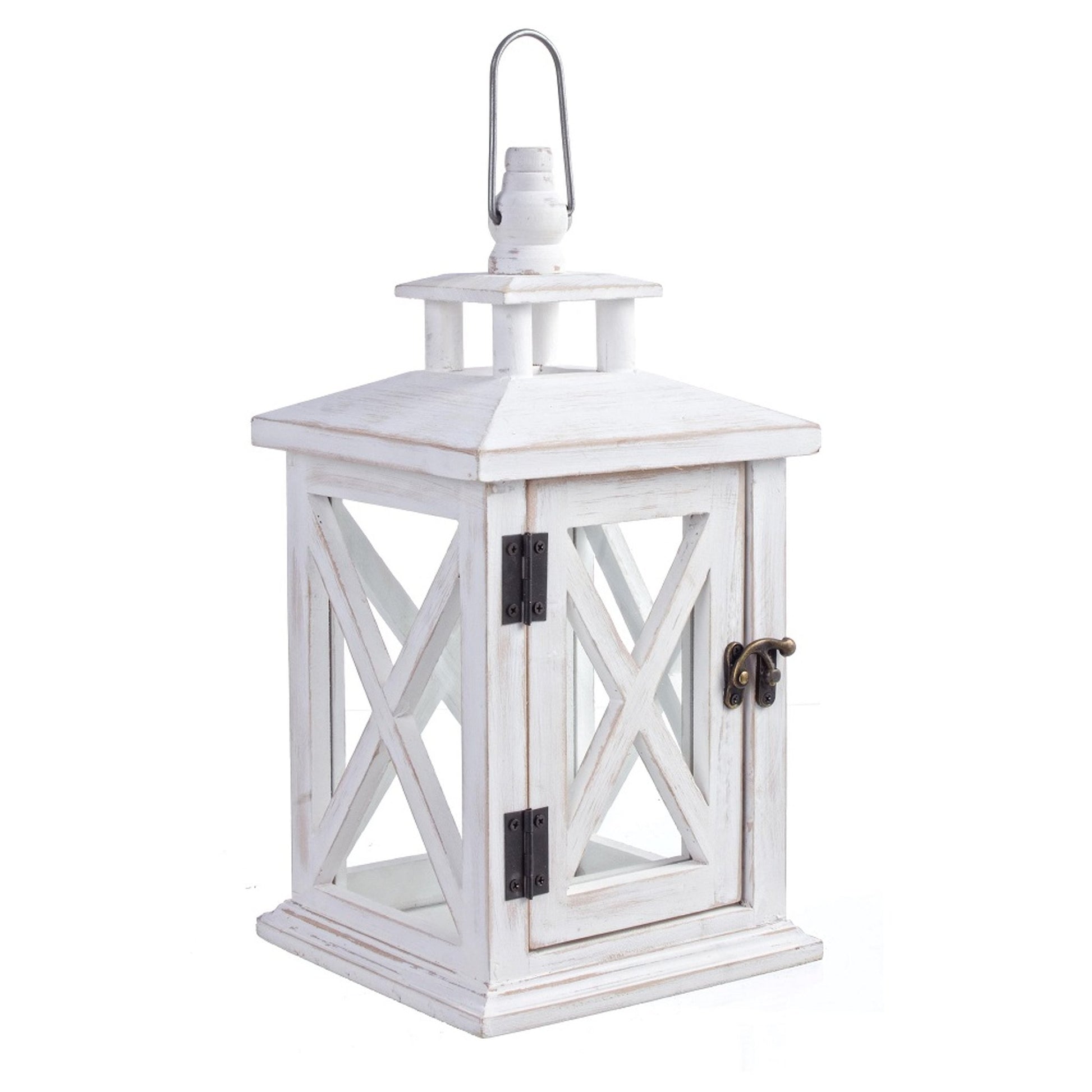 Lanterna bianca 17x17x33 cm in legno e vetro
