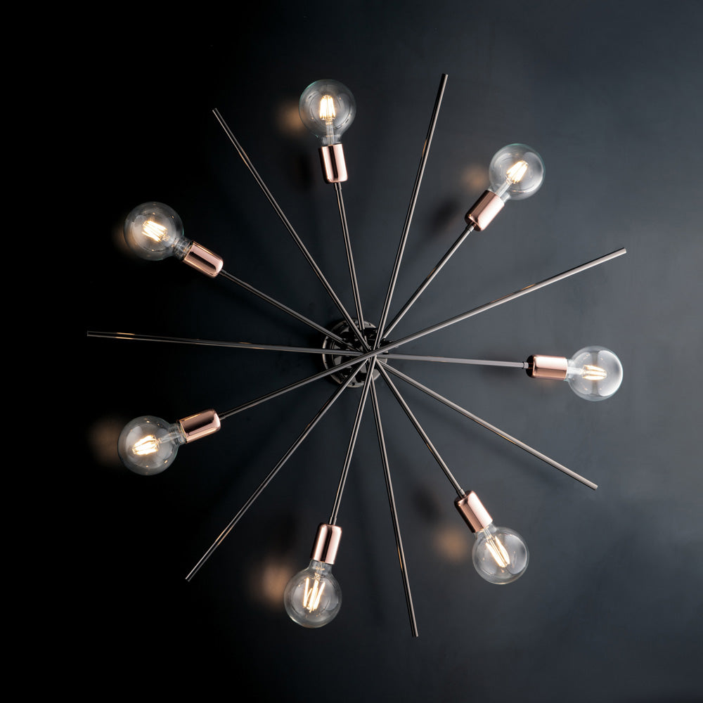 La plafoniera in ferro nero e rame è un elemento d'arredo elegante e moderno, ideale per illuminare con stile qualsiasi ambiente. Con le sue 7 luci, offre una luminosità ottimale, perfetta per soggiorni, sale da pranzo o uffici. Le dimensioni di 14x95 cm la rendono versatile e adatta a spazi di diverse grandezze. Il contrasto tra il ferro nero e il rame conferisce un tocco di raffinatezza e originalità.