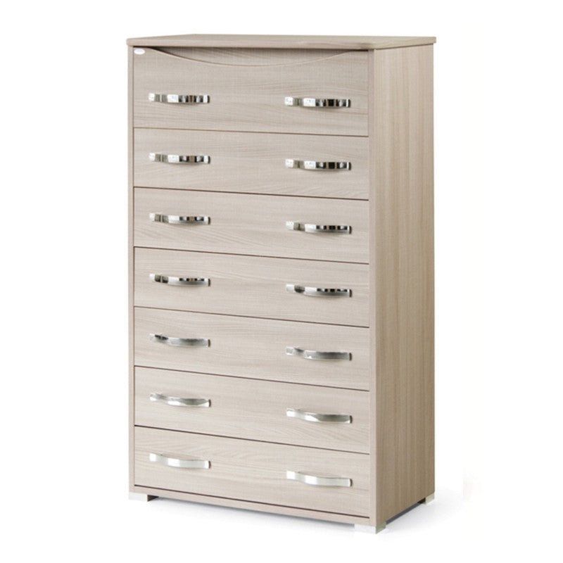 Cajonera de 7 cajones y guías metálicas, equipada con cajón reforzado y tapa articulada.