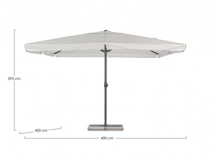 ✓ The Alghero 4x4 umbrella includes a steel cross base for added stability and strength. It is recommended to use at least 8 paving slabs (not included) to securely anchor the umbrella. For optimal stability, especially in windy conditions, the use of slabs weighing between 160 and 200 kg is advised.