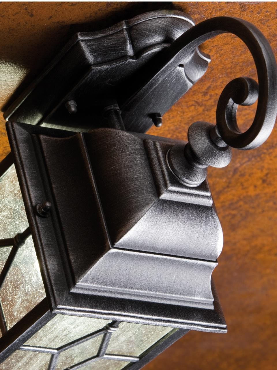 Die-cast aluminum wall lamp. Diffuser in transparent ground glass. Max lamp height: 155mm. Power supply 230 V ~ 50 Hz. Protection class: IP33 Maximum lamp power: 60W