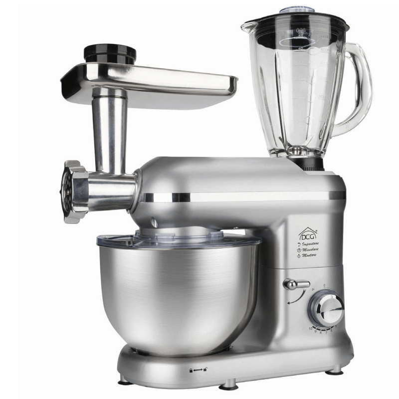 Also included in the set are a food chopper with pusher and a 1.5 liter blender, to prepare smoothies and smoothies in seconds. Furthermore, the DCG Superchef Professional KM9805 mixer is equipped with non-slip feet to ensure maximum stability during use.