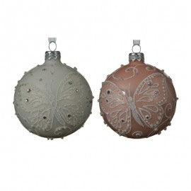 Pallina sfera natalizia in vetro FARFALLA assortita Bianco Rosa 8 cm