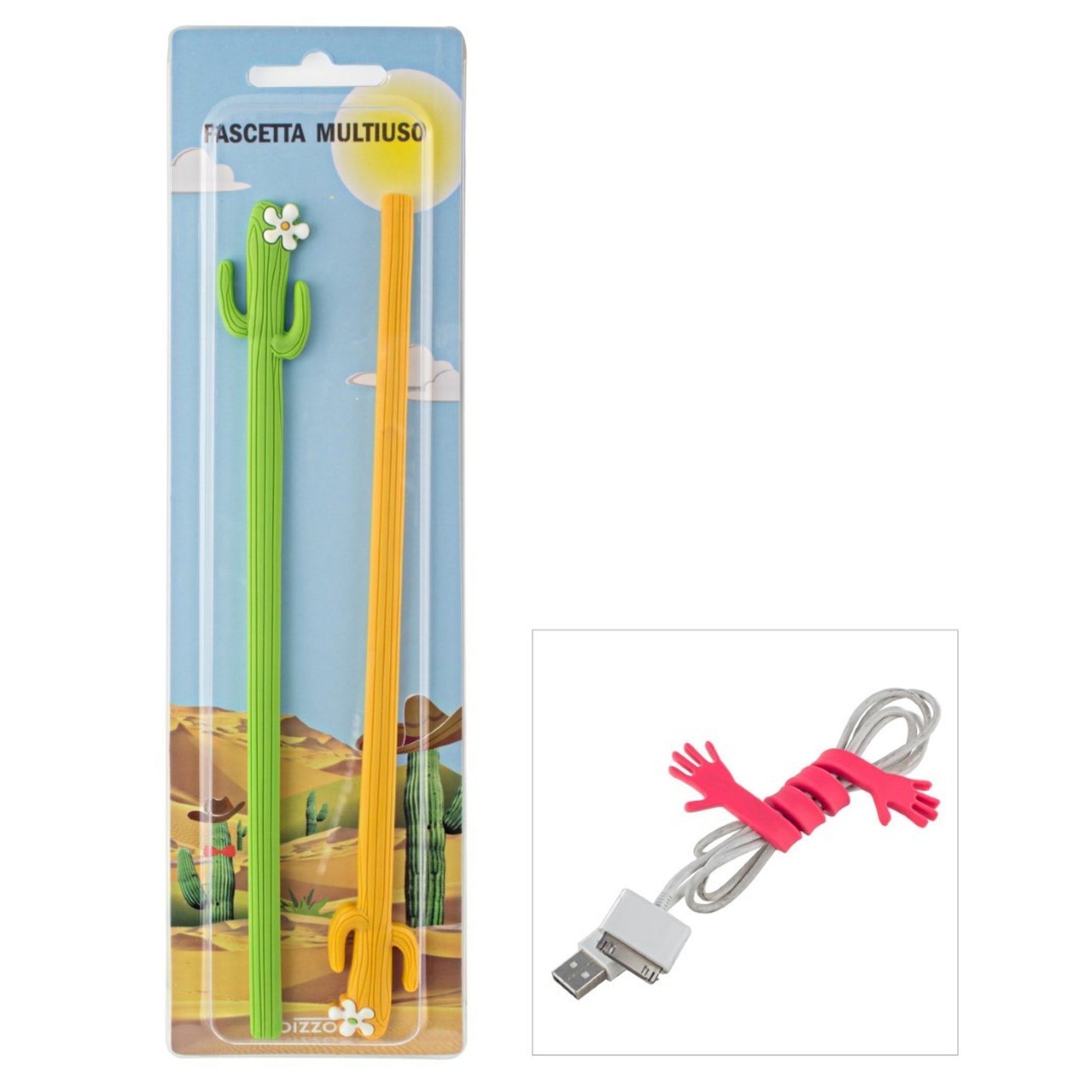 Elegante set composto da due fascette pieghevoli con decoro a forma di cactus, realizzate in materiale resistente e leggero. Ideali per chiudere confezioni, cavi o organizzare piccoli oggetti con uno stile originale e divertente. Facili da usare e ripiegabili per riporle in modo compatto.