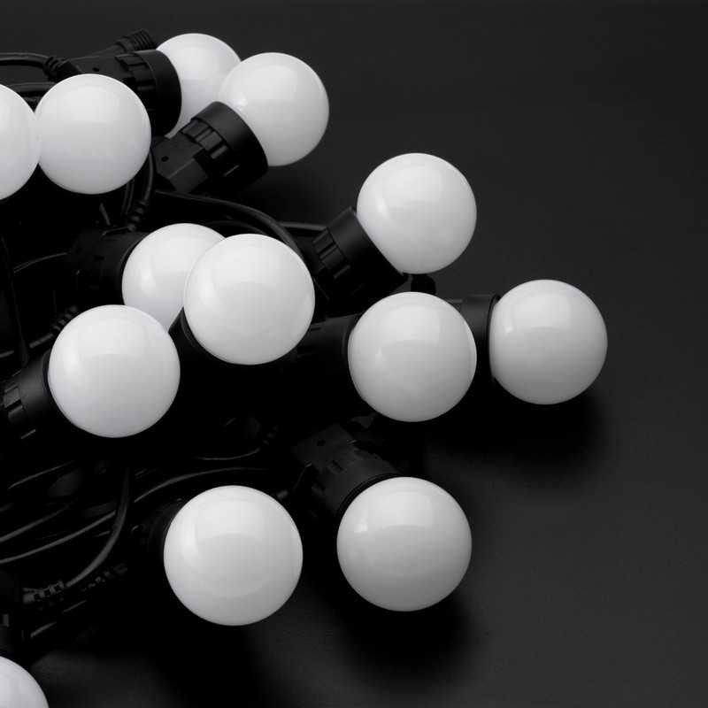 The Twinkly Festoon light chain has 20 RGB G45 LEDs. Using an app or connecting to smart-home systems, colored light scenarios of all kinds are created and managed to create atmosphere.