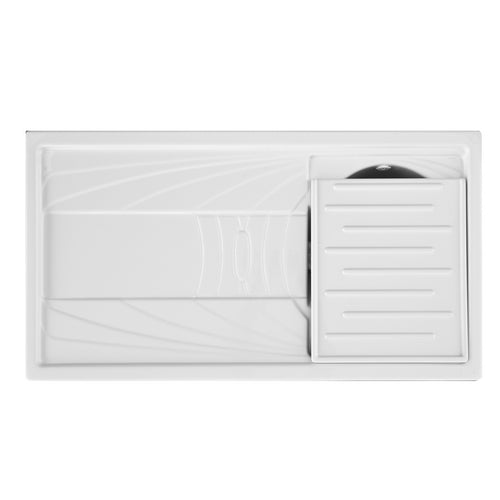 Product made of resin treated with UD additive useful against the aggression of ultraviolet rays. Suitable for outdoor use, equipped with transparent polyethylene scratch-resistant protective film, adjustable foot. With tanks on the right or left. Washing machine compartment dimensions H. 85.5 cm - L. 63 cm. Bowl depth 25 cm. Complete with siphon and drain. Drillable tank for tap installation.